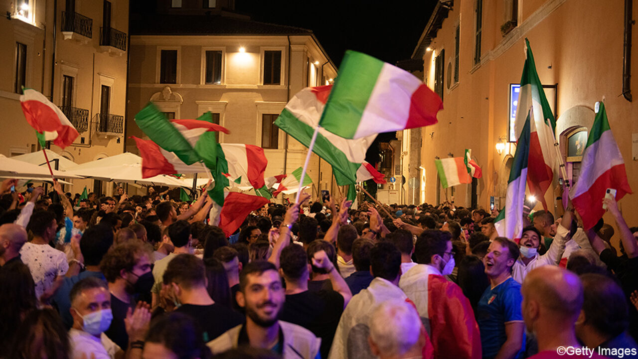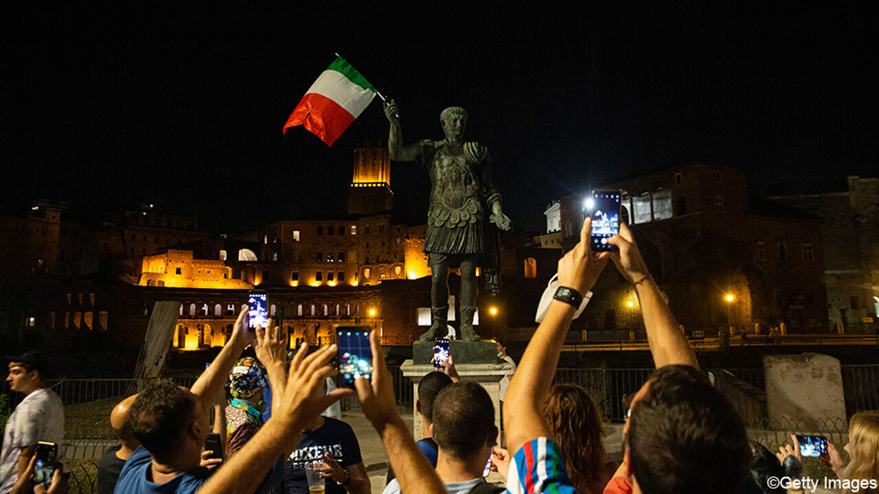 Ieri sera decine di migliaia di italiani sono scesi in piazza per festeggiare il titolo europeo. Centinaia di auto e moto sono scese in strada, compresa la capitale. In tanti si sono riversati sui maxischermi vicino al Colosseo ea Piazza del Popolo a Roma per assistere alla finale.