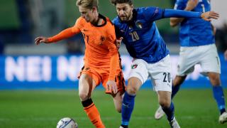 – Frenkie de Jong combatte con Manuel Locatelli durante l’ultima partita internazionale tra Olanda e Italia a Bergamo nel 2020.